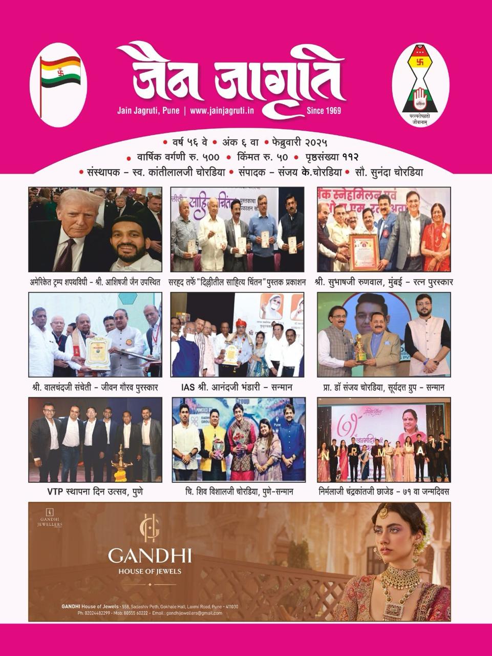 Jain Jagruti, started in 1969 completed its 50 years in 2019. On this occasion of golden jubilee, various eminent personalities shared their experience about Jain Jagruti, expressed their gratitude for undertaking this noble cause and thanked Jain Jagruti team for their relentless efforts to make this possible. Many panelist expressed how they are habitual of reading Jain Jagruti. Jain Jagruti's quality, coverage, and it's neutral stance was praised. It was mentioned that Jain Jagruti has become a platform to reach Jain community all over Maharashtra and the world.